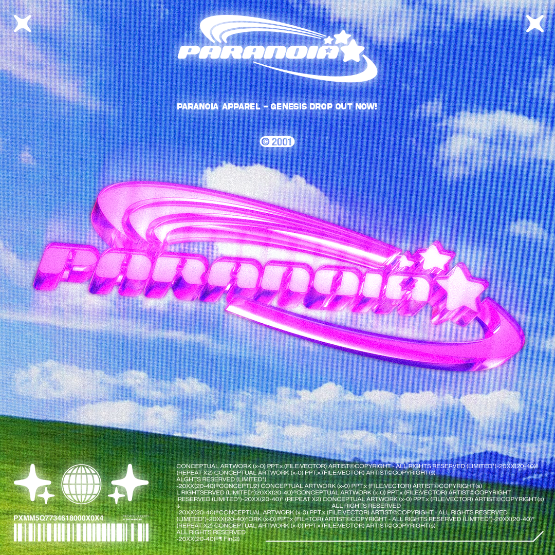 LOGO DESIGN AND BRAND DIRECTION WE DID FOR CLOTHING BRAND PARANOIA, FOR THEIR GENESIS DROP. We also Created 3D RENDERINGS OF THE LOGO, FORMATED FOR BOTH ANIMATION AND PRINT.